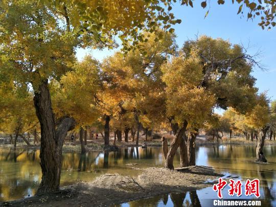 近些年,当地胡杨林的壮观景象陆续吸引大量中外游客前来体验“极目金黄千里秀,自成一景阅沧桑”的意境。