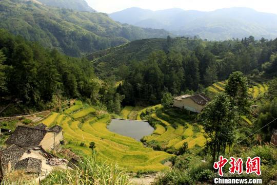 近日,福建宁德市寿宁县托溪乡,纵横交错和层层叠叠的梯田线条,与青山、村舍构成一幅美丽的画卷。
