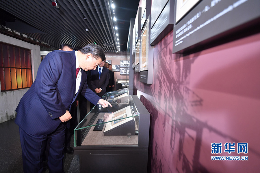 10月31日,中共中央总书记、国家主席、中央军委主席习近平带领中共中央政治局常委李克强、栗战书、汪洋、王沪宁、赵乐际、韩正,瞻仰上海中共一大会址和浙江嘉兴南湖红船。这是31日上午,习近平等在上海中共一大会址纪念馆参观。新华社记者 李涛 摄