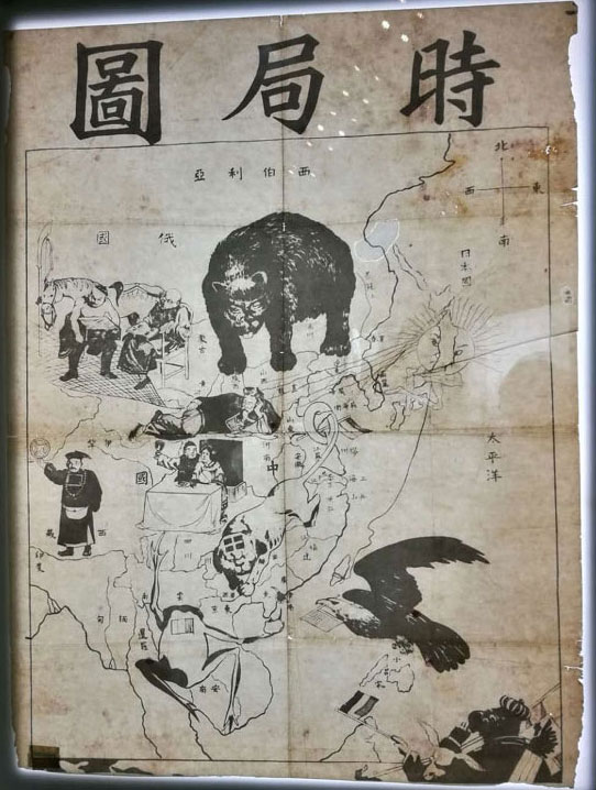 发黄的纸张上,熊、鹰、犬、蛤蟆盘踞在中国版图上,将中国瓜分豆剖……
