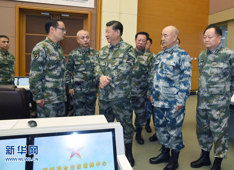 11月3日,中共中央总书记、国家主席、中央军委主席、军委联指总指挥习近平视察军委联合作战指挥中心,表明新一届军委贯彻落实党的十九大精神、推动全军各项工作向能打仗、打胜仗聚焦的鲜明态度。这是习近平察看了解中心值班备战情况。新华社记者 李刚 摄