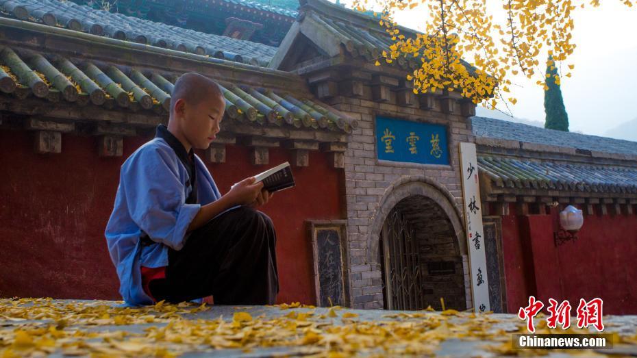 银杏古树见证了少林寺创寺、发展、没落、重生的久远历史,如今,坐在树下的小僧人,延续着千年的少林故事。 付文龙 摄