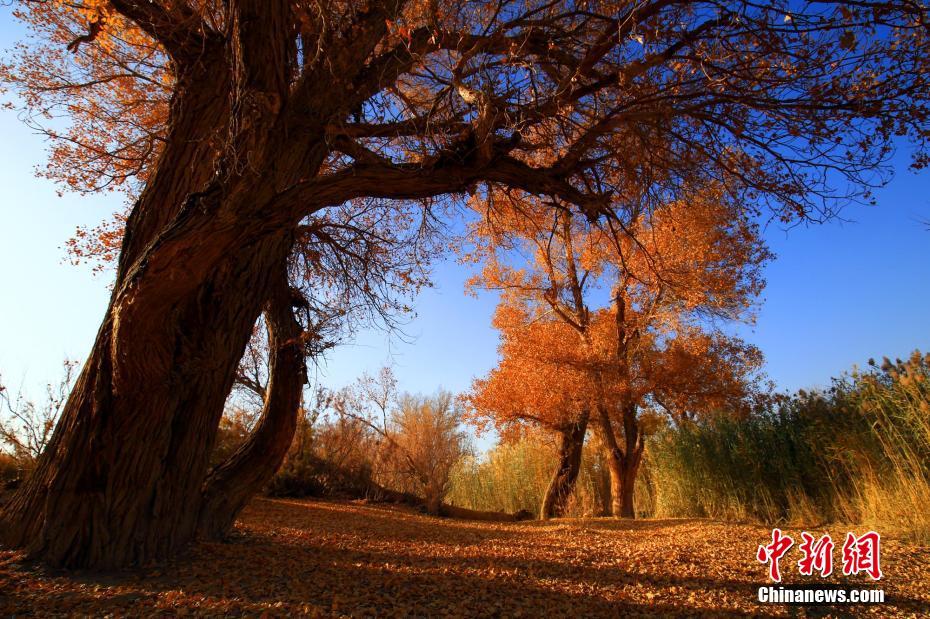 沧桑的胡杨树旁长满了芦苇。李靖海 摄