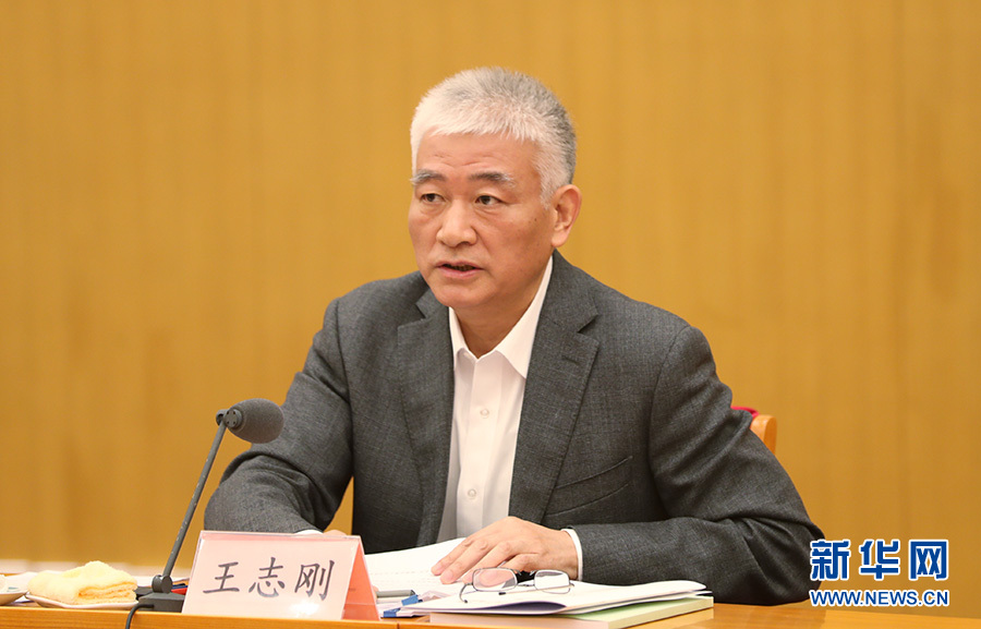 11月13日,科技部党组和全国科技厅党组学习党的十九大精神中心组主题联学在北京举行。图为科技部党组书记、副部长王志刚主持联学活动并作主旨发言。新华网 陈杰 摄
