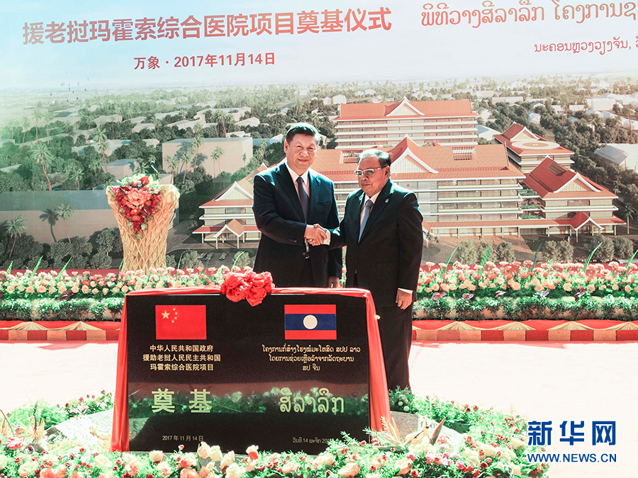 新华社万象11月14日电(记者刘华 李建敏)中共中央总书记、国家主席习近平14日同老挝人民革命党中央委员会总书记、国家主席本扬在万象一道出席玛霍索综合医院奠基仪式。