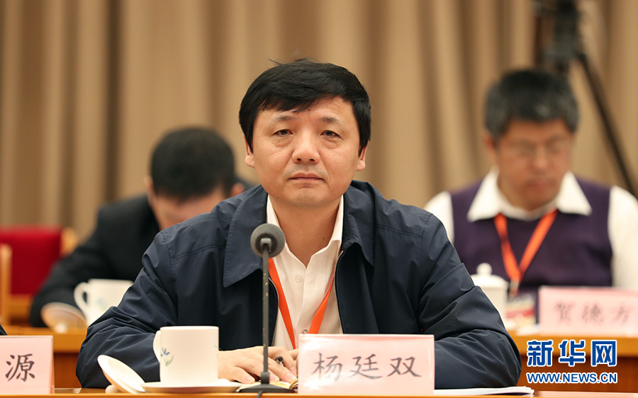 11月14日,科技部党组和全国科技厅党组学习党的十九大精神中心组主题联学在北京举行。图为黑龙江省科技厅党组书记、厅长杨廷双发言。新华网 陈杰 摄