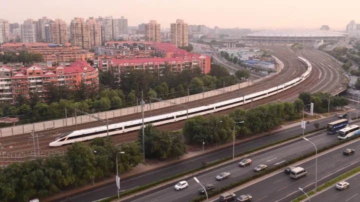 9月21日,一列“复兴号”列车驶出北京南站。新华社记者 李贺 摄