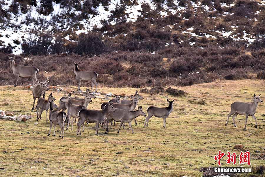 一大群野鹿在可可西里腹地觅食,场面壮观。 切嘎 摄
