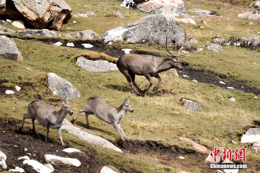 奔跑中的野鹿。 切嘎 摄