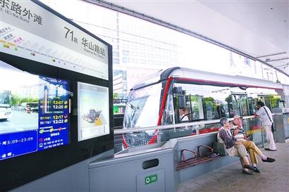 71路中运量公交华山路站乘车舒适度预报。记者 蒋迪雯 摄