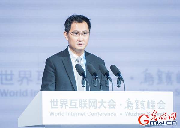腾讯控股有限公司董事长兼首席执行官马化腾在演讲。(来源:光明网)