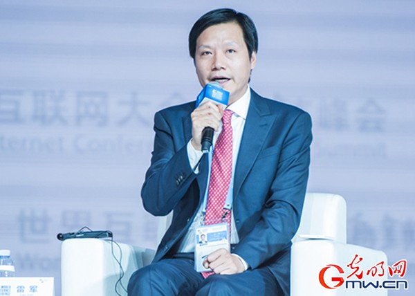 小米科技有限公司首席执行官雷军在演讲。(来源:光明网)