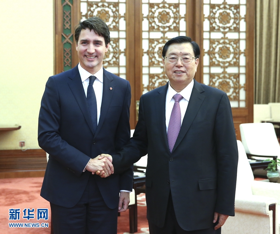 12月5日,全国人大常委会委员长张德江在北京人民大会堂会见加拿大总理特鲁多。 新华社记者 姚大伟 摄