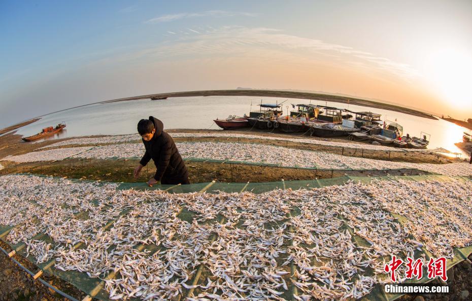 鄱阳湖畔渔家晒丰收 场面壮观鱼干飘香