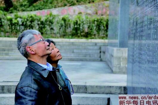 从1937年到2017年,80年过去了。今年这个年份对鲁家人来说不同寻常,鲁照宁带着父亲鲁振国和母亲王素英一起回到了南京,先去祭拜了姑奶奶,又去“哭墙”前献上了一束鲜花。12月13日,父子俩将第一次向侵华日军南京大屠杀遇难同胞纪念馆共同捐赠史料。(记者 蒋芳)