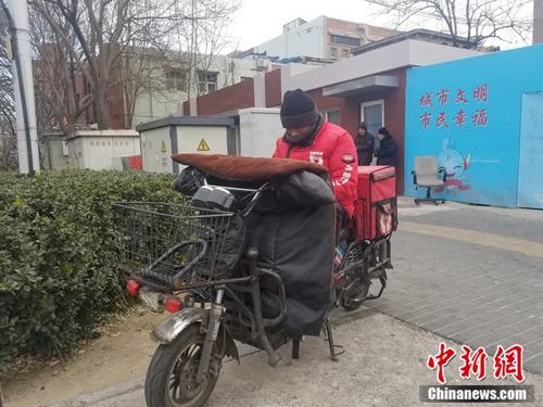 “妻子很担心我冻坏了”,陈旭挽起裤脚露出了他腿上厚厚的棉裤,又指着电动车前的挡风罩说:“冬天在外重要的是要保护好自己,别将来得了风湿病,麻烦。”