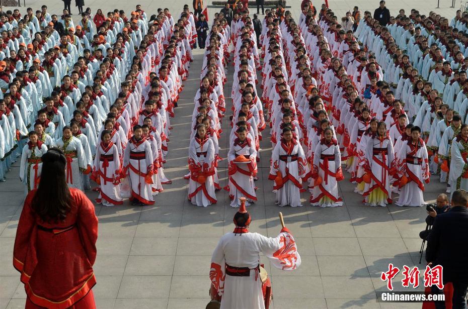 12月19日,湖北省秭归县屈原故里文化旅游区迎来荆州市研学旅行学生团队,700多名学生身着楚服行拜师礼,在集体诵读《楚辞》、学唱《招魂曲》等活动中,感受浓浓的巴楚文化和屈原文化。屈原故里文化旅游区位于秭归县新县城,毗邻三峡大坝,该景区将中华传统文化、巴楚文化、屈原文化、三峡文化融为一体,开展了礼拜屈原、拜师礼、诵读经典、划龙舟、包粽子等丰富多彩的研学活动,成为青少年学生研学旅行的热门之地。截至目前,该旅游区已累计接待研学旅行学生11万余人。图为学唱《招魂曲》。 雷勇 摄
