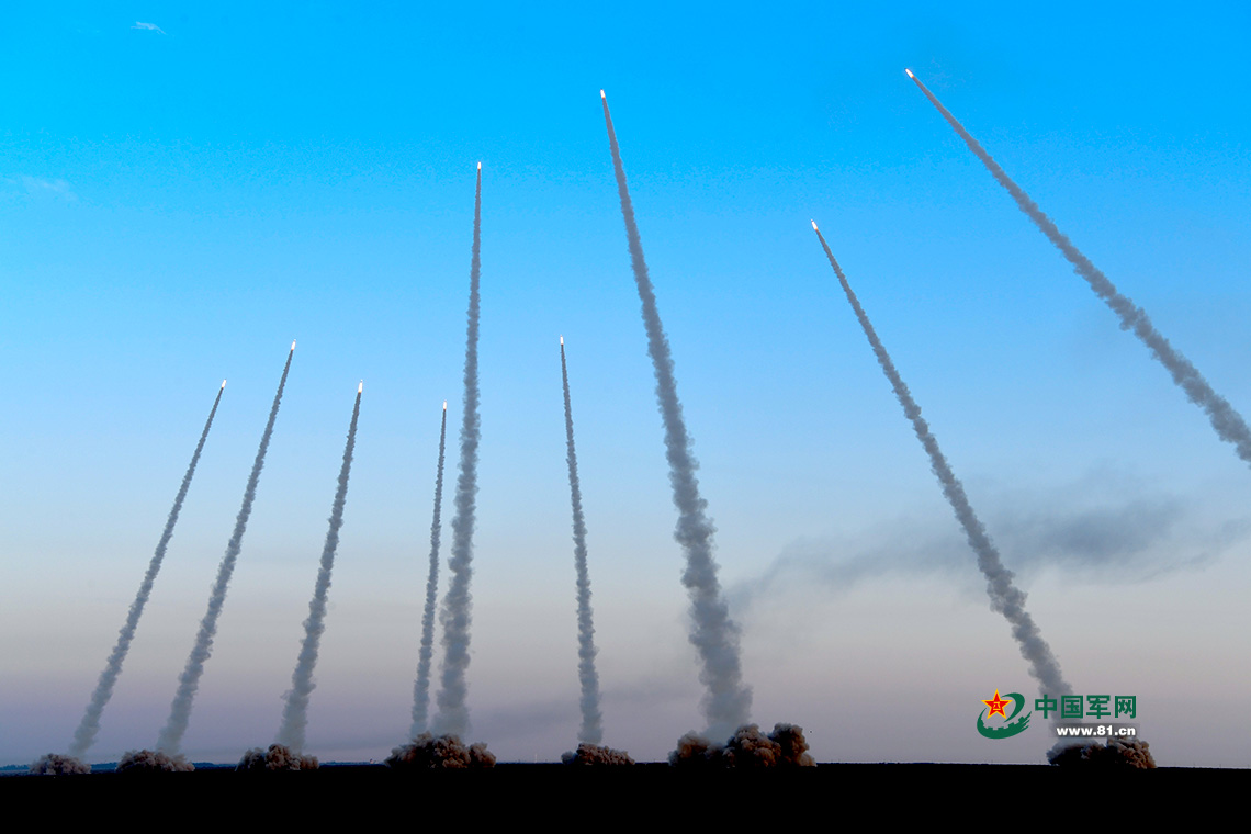 “火力-2017·青铜峡”进入实弹战术检验阶段,这是万箭齐发的场景。彭希摄影