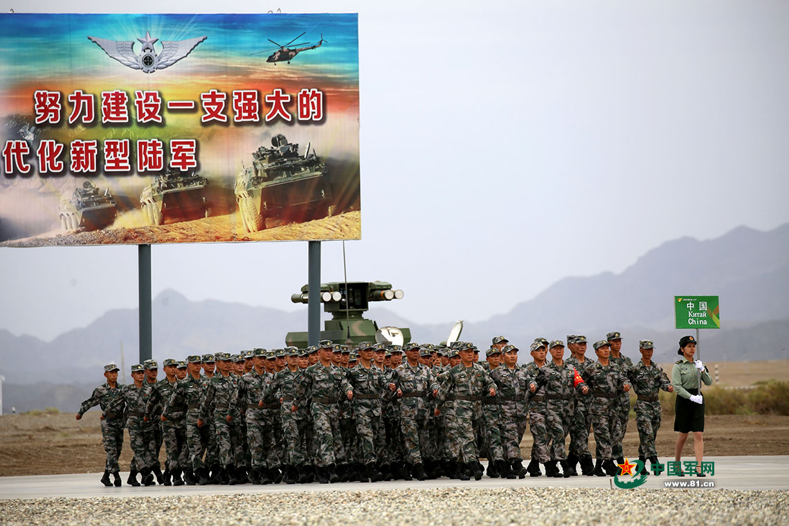 “国际军事比赛-2017”库尔勒赛区,中国陆军参赛队入场。罗兴仓摄影