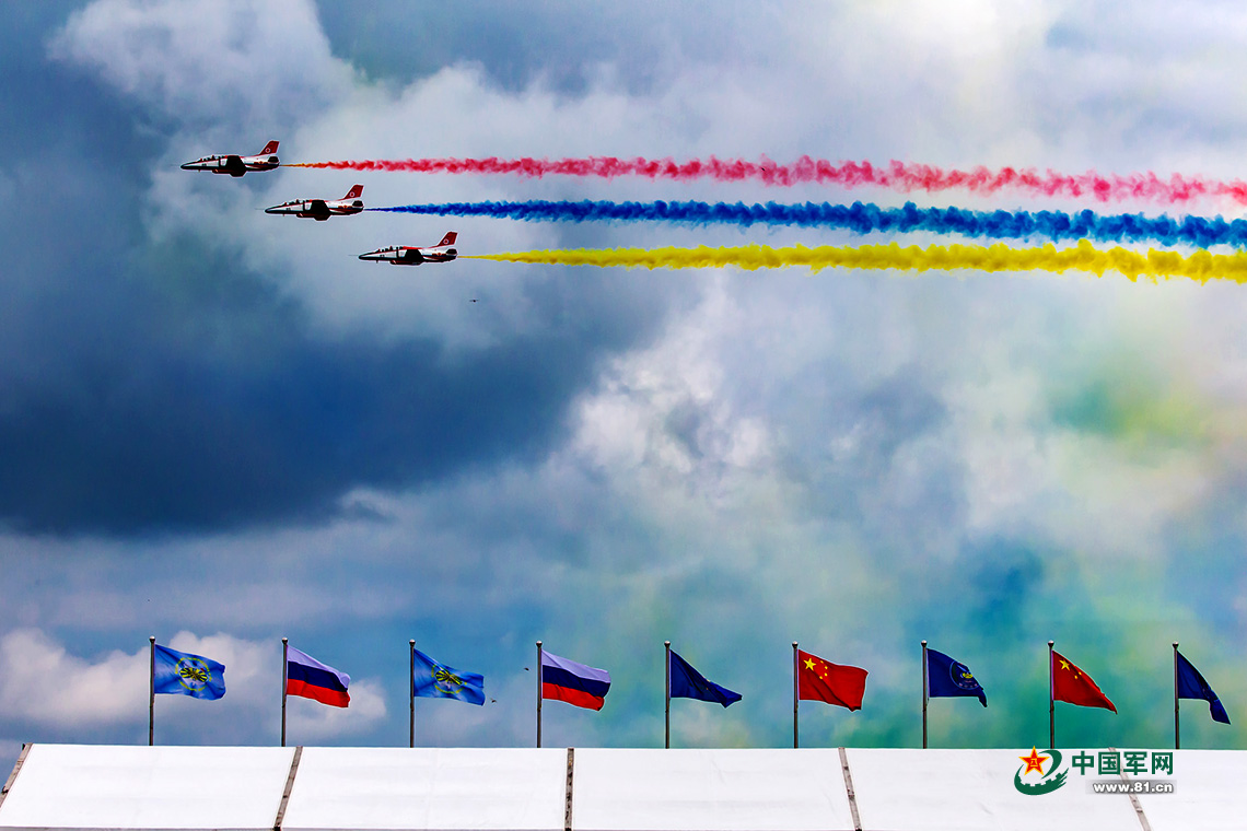 2017年8月4日,“国际军事比赛-2017”航空飞镖项目,中国空军“红鹰”飞行表演队亮相“航空飞镖”靶场开放日。杨盼摄影