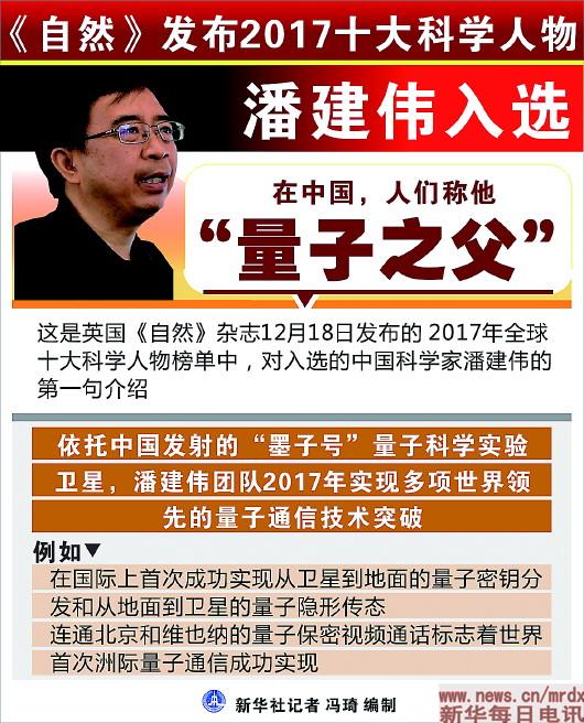 ▲图表:《自然》发布2017十大科学人物,潘建伟入选。