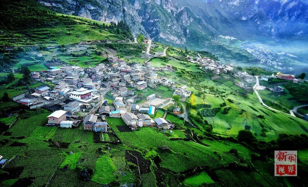 ▲ 2017年6月21日航拍的雨后清晨的扎尕那美丽景色。扎尕那位于甘肃省甘南藏族自治州迭部县西北30余公里处的益哇乡,藏语意为“石匣子”。地形既像一座规模宏大的巨型宫殿,又似天然岩壁构筑的一座完整的古城。扎尕那山势奇峻、云雾缭绕、宛如仙境。藏寨内游牧、农耕、狩猎和樵采等多种生产活动合理搭配和互补融合,成为人与自然和谐相处的一个典范。新华社记者 陈斌 摄