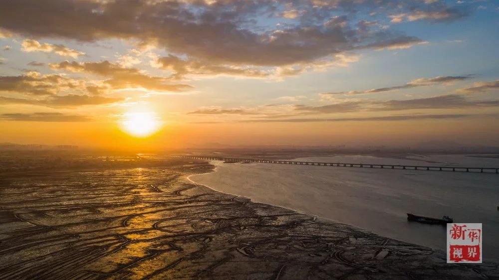 ▲ 2017年11月1日在福建省石狮市蚶江镇石湖港附近航拍的滩涂落日美景。石湖古码头位于福建省泉州市石狮石湖半岛,相传为唐朝航海家林銮所建,俗称“林銮渡”。宋元时期,这里曾是泉州湾“海上丝绸之路”的重要支港之一。新华社记者 宋为伟摄