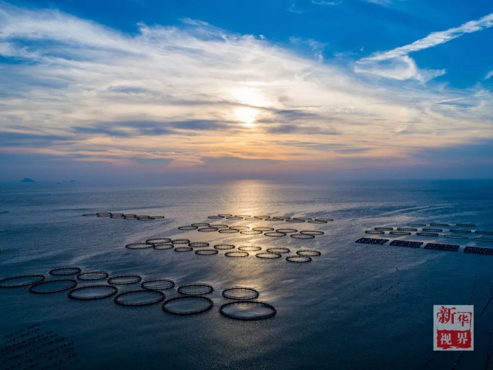 ▲ 2017年7月20日航拍的夕阳下的南麂列岛马祖岙港湾景色。南麂列岛位于浙江省东南海域,陆域面积11.3平方公里,是我国首批5个海洋类型的自然保护区之一,享有“贝藻王国”、“碧海仙山”等美誉。新华社记者 徐昱摄