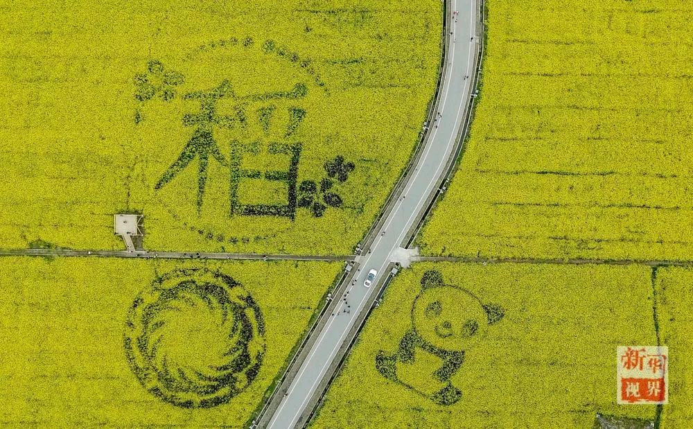 ▲ 2017年3月18日在四川成都崇州市航拍的油菜花田。新华社记者 薛玉斌摄