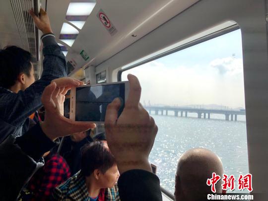 当厦门地铁从经过高崎站之后,记者看到,大部分旅客都把目光投向窗外,并举起手机相机准备拍照,不一会,地铁“跃出”地面,在高架上跨海驶向集美学村,窗外碧蓝的海水海波荡漾,景致迷人。
