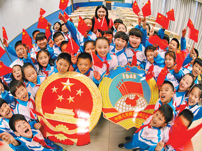 河北秦皇岛先盛里小学开展“两会知识知多少”主题班会。 曹建雄摄(人民视觉)