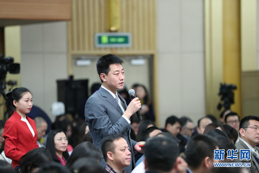 3月7日,十二届全国人大五次会议新闻中心举行记者会,邀请财政部部长肖捷、部长助理戴柏华就“财政工作和财税改革”的相关问题回答中外记者的提问。图为中央电视台记者提问。新华网/中国政府网 翟子赫 摄