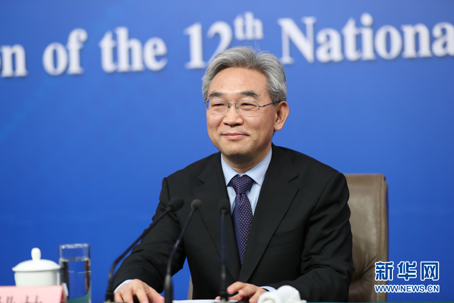 3月7日,十二届全国人大五次会议举行记者会,农业部部长韩长赋、副部长张桃林就“推进农业供给侧结构性改革”的相关问题回答中外记者的提问。图为农业部副部长张桃林。新华网/中国政府网 翟子赫 摄