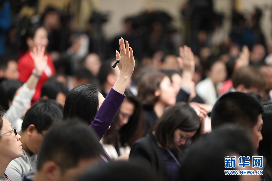 十二届全国人大五次会议新闻中心于3月8日(星期三)10时在梅地亚中心多功能厅举行记者会,邀请外交部部长王毅就“中国的外交政策和对外关系”的相关问题回答中外记者的提问。图为现场记者踊跃提问。新华网/中国政府网 翟子赫 摄