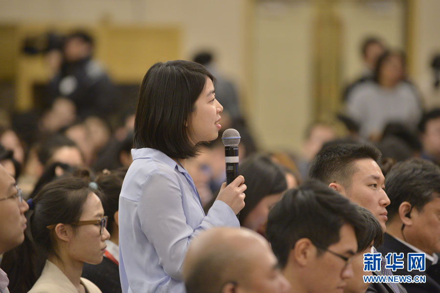 3月10日,十二届全国人大五次会议新闻中心举行记者会,邀请中国人民银行行长周小川、副行长易纲、副行长兼国家外汇管理局局长潘功胜、副行长范一飞就“金融改革与发展”的相关问题回答中外记者的提问。图为财新记者提问。新华网/中国政府网 王健 摄