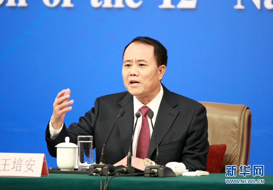 3月11日,十二届全国人大五次会议新闻中心举行记者会,邀请国家卫生计生委主任李斌、副主任王培安和副主任、国务院医改办主任王贺胜就“‘十三五’开局之年卫生计生改革发展”的相关问题回答中外记者的提问。图为国家卫生计生委副主任王培安回答记者提问。新华网/中国政府网 翟子赫 摄