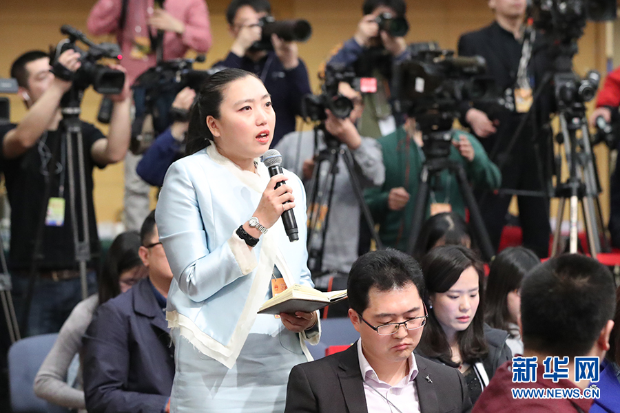 3月11日,十二届全国人大五次会议新闻中心举行记者会,邀请国家卫生计生委主任李斌、副主任王培安和副主任、国务院医改办主任王贺胜就“‘十三五’开局之年卫生计生改革发展”的相关问题回答中外记者的提问。图为中央电视台记者提问。新华网/中国政府网 傅义洲 摄