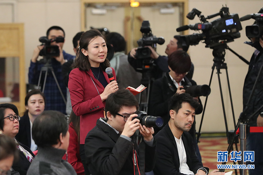 3月11日,十二届全国人大五次会议新闻中心举行记者会,邀请国家卫生计生委主任李斌、副主任王培安和副主任、国务院医改办主任王贺胜就“‘十三五’开局之年卫生计生改革发展”的相关问题回答中外记者的提问。图为中央人民广播电台记者提问。新华网/中国政府网 傅义洲 摄