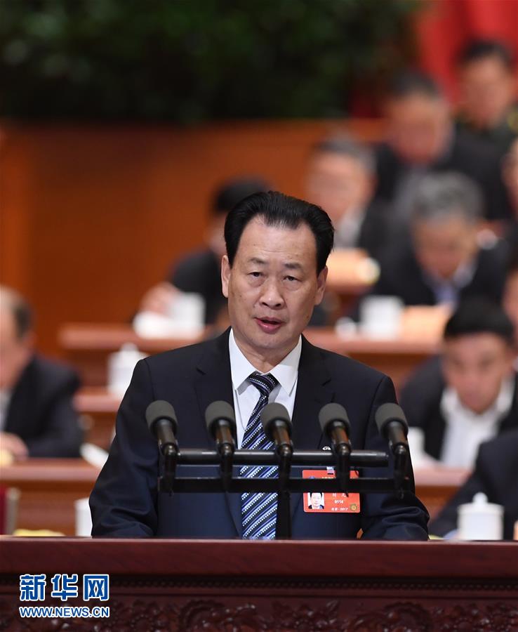 3月11日,全国政协十二届五次会议在北京人民大会堂举行第四次全体会议。这是刘凡委员代表民革中央、全国政协社会和法制委员会作《关于构建完整的跨行政区划人民法院体系的建议》的发言。新华社记者 张铎 摄