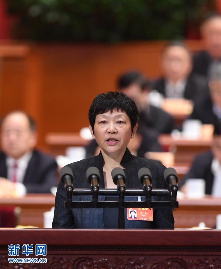 3月11日,全国政协十二届五次会议在北京人民大会堂举行第四次全体会议。这是印红委员作《力戒表面看齐 狠抓政策落地》的发言。 新华社记者张铎 摄