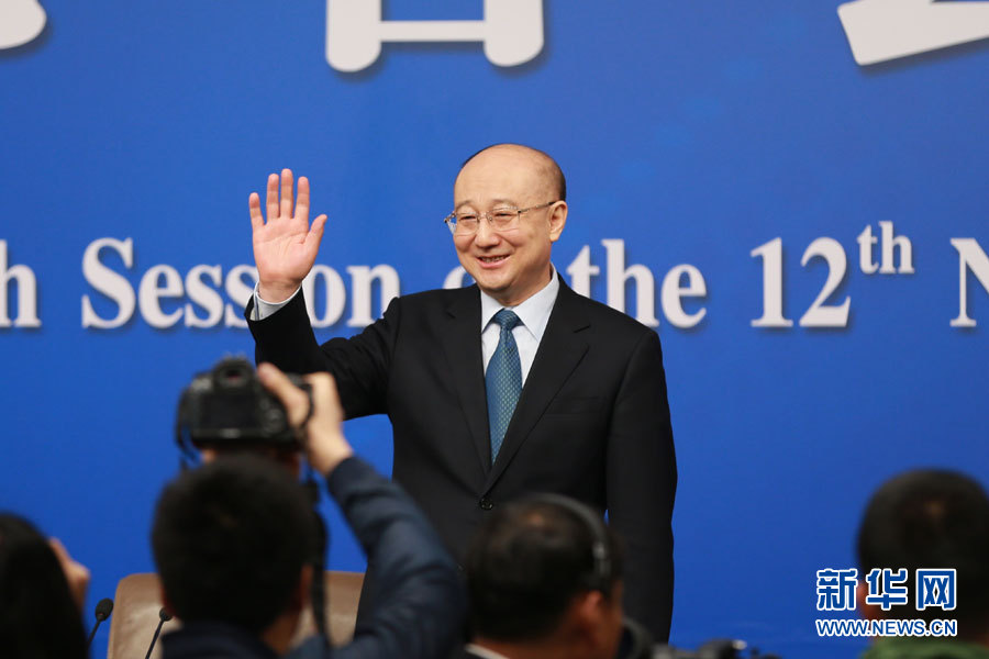 3月14日,十二届全国人大五次会议新闻中心举行记者会,邀请国家质检总局局长支树平、副局长兼国家认证认可监督管理委员会主任孙大伟、国家标准化管理委员会主任田世宏就“质量提升”的相关问题回答中外记者的提问。图为国家质检总局局长支树平。新华网/中国政府网 傅义洲 摄