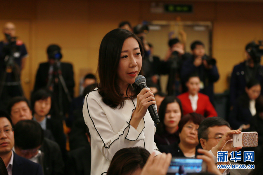 3月14日,十二届全国人大五次会议新闻中心举行记者会,邀请国家质检总局局长支树平、副局长兼国家认证认可监督管理委员会主任孙大伟、国家标准化管理委员会主任田世宏就“质量提升”的相关问题回答中外记者的提问。图为环球时报记者提问。新华网/中国政府网 傅义洲 摄