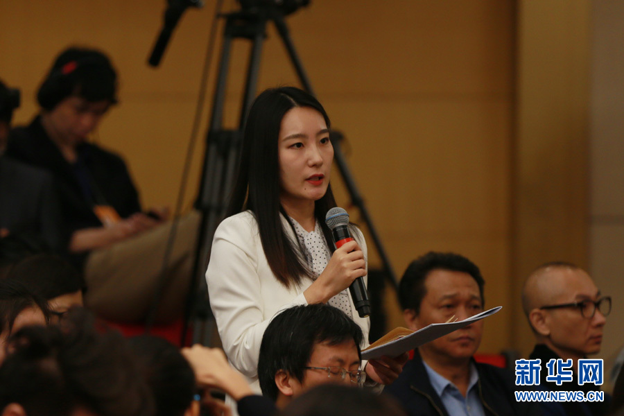 3月14日,十二届全国人大五次会议新闻中心举行记者会,邀请国家质检总局局长支树平、副局长兼国家认证认可监督管理委员会主任孙大伟、国家标准化管理委员会主任田世宏就“质量提升”的相关问题回答中外记者的提问。图为广西人民广播电台记者提问。新华网/中国政府网 傅义洲 摄