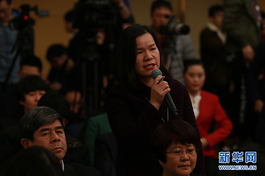 3月14日,十二届全国人大五次会议新闻中心举行记者会,邀请国家质检总局局长支树平、副局长兼国家认证认可监督管理委员会主任孙大伟、国家标准化管理委员会主任田世宏就“质量提升”的相关问题回答中外记者的提问。图为香港大公报、文汇报记者提问。新华网/中国政府网 傅义洲 摄