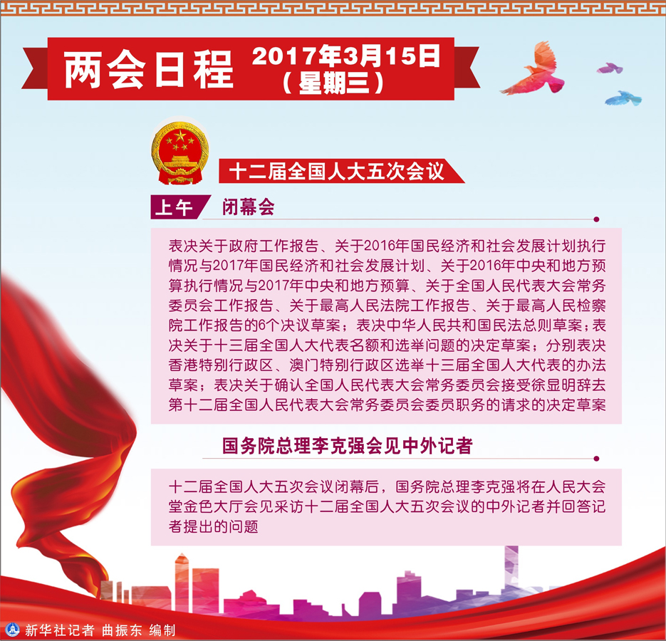 图表:3月15日两会日程 新华社记者 曲振东 编制