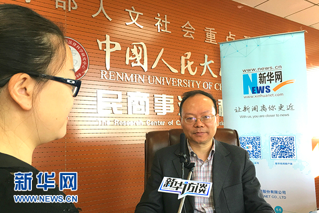 15日上午,民法总则草案表决通过,中国人民大学法学院教授、中国民法学研究会秘书长王轶接受本网专访解读。(新华网实习生杨怡然摄)