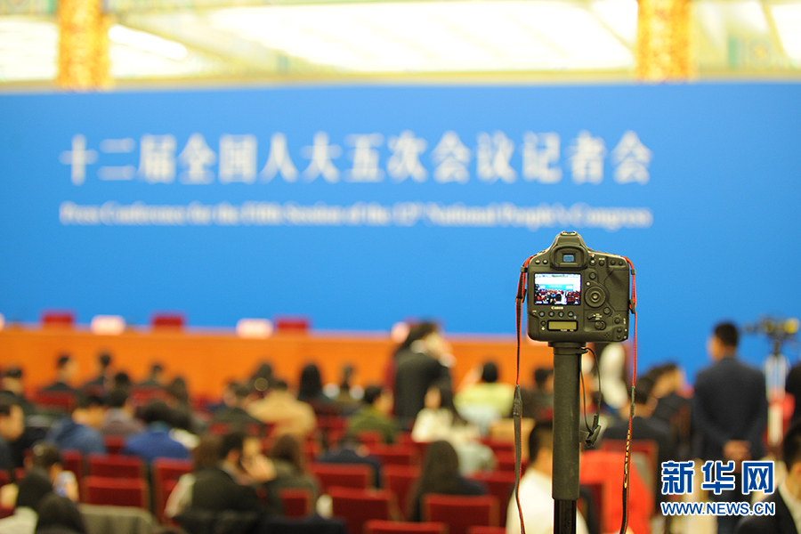 3月15日上午,国务院总理李克强在人民大会堂三楼金色大厅会见采访十二届全国人大五次会议的中外记者并回答记者提出的问题。图为记者会现场。新华网/中国政府网 翟子赫 摄