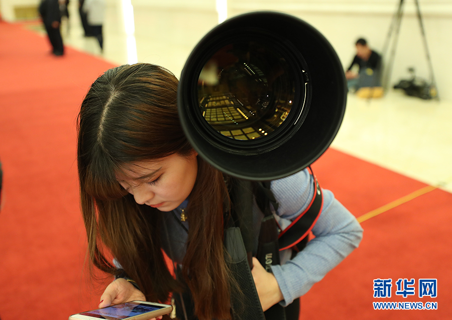 3月15日上午,国务院总理李克强在人民大会堂三楼金色大厅会见采访十二届全国人大五次会议的中外记者并回答记者提出的问题。图为记者在现场。新华网/中国政府网 翟子赫 摄