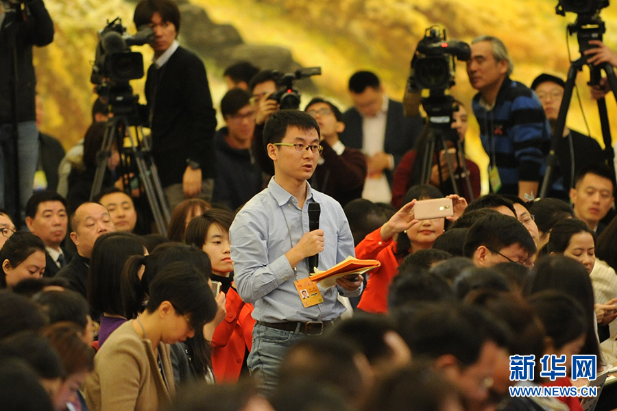 3月15日上午,国务院总理李克强在人民大会堂三楼金色大厅会见采访十二届全国人大五次会议的中外记者并回答记者提出的问题。图为深圳特区报记者提问。新华网/中国政府网 翟子赫 摄