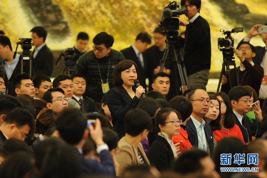 3月15日上午,国务院总理李克强在人民大会堂三楼金色大厅会见采访十二届全国人大五次会议的中外记者并回答记者提出的问题。图为台湾联合报记者提问。新华网/中国政府网 孙韬 摄